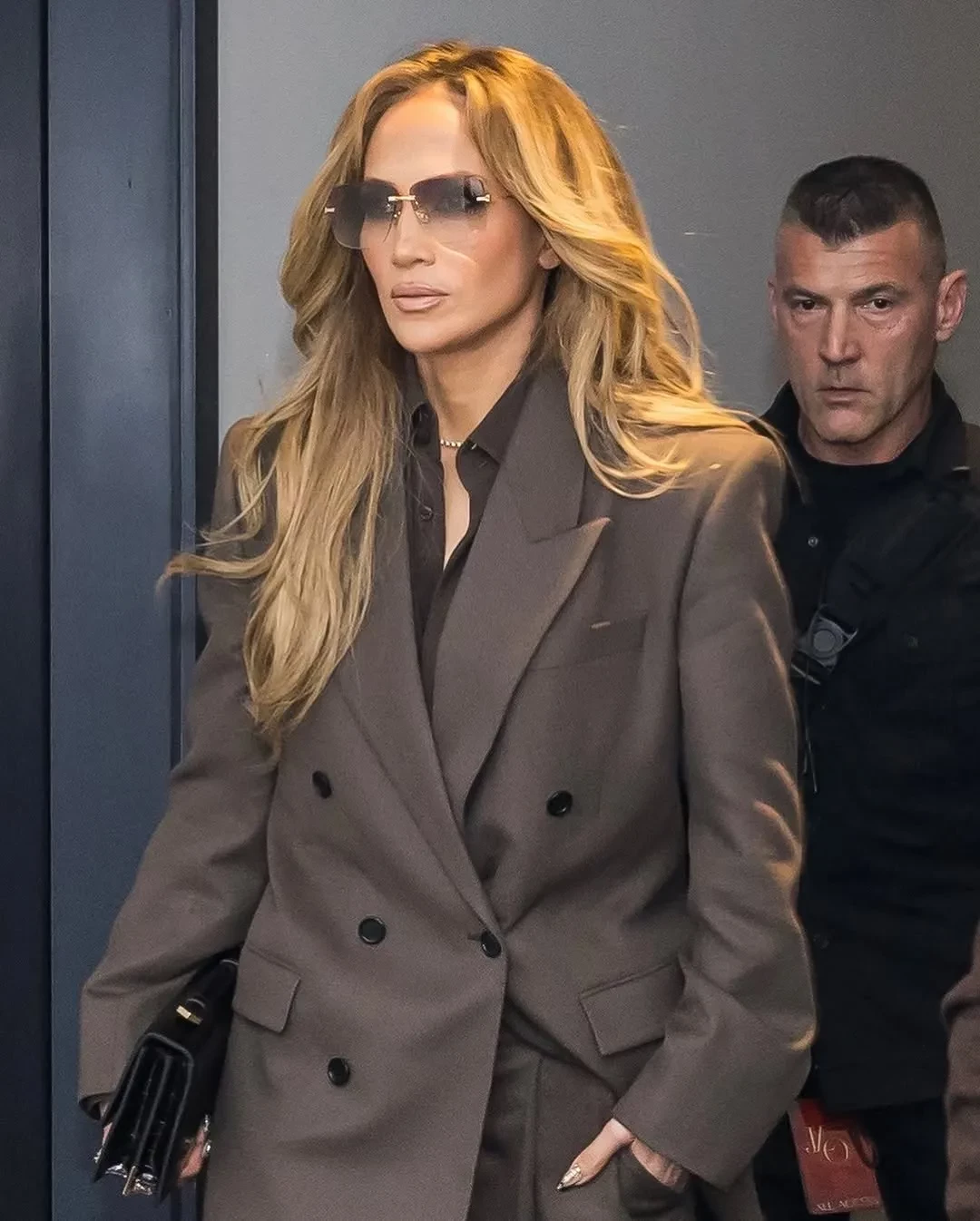 Дженнифер Лопес проводит время в Дубае. 55-летняя актриса вышла в свет в костюме Saint Laurent кофейного оттенка и дополнила образ солнцезащитными очками и босоножками на высокой танкетке. "Деловая поездка", — подписала фото экс-супруга Бена Аффлека.