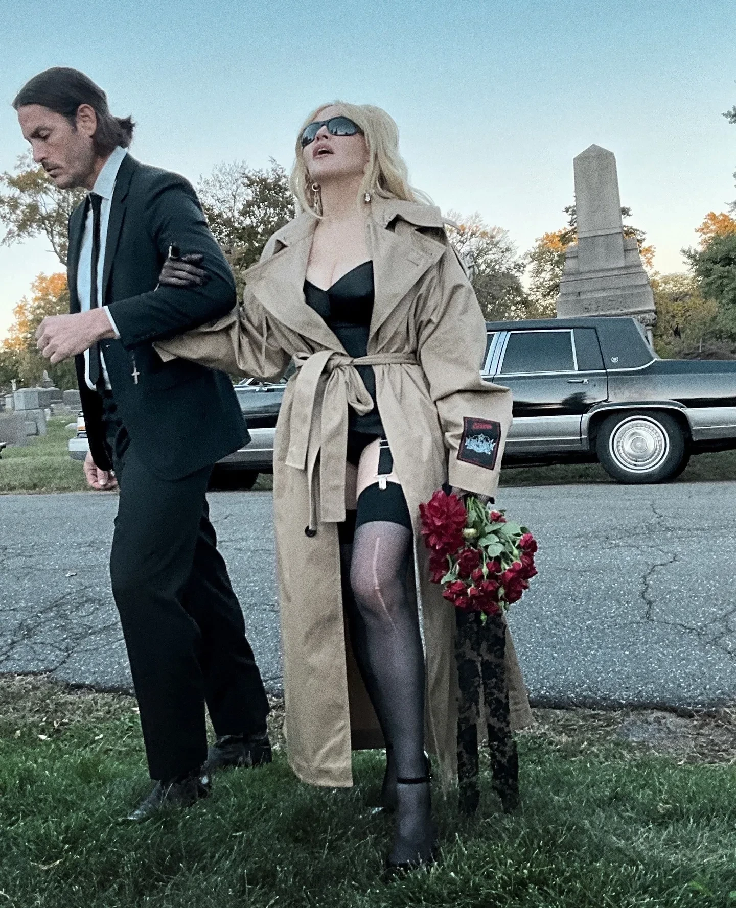 На фотографиях Мадонна предстает в образе женщины-вамп, дополняя его характерными атрибутами: чулки, солнцезащитные очки, длинный плащ, меха, перчатки и множество характерных украшений.