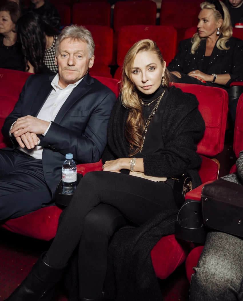 Дмитрий Песков, Татьяна Навка, Яна Рудковская и Олег Меньшиков с женой на премьере фильма "Роднина"