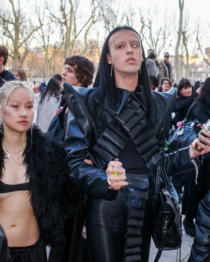 Основательница концепт-стора КМ20 Ольга Карпуть пришла на шоу в том же платье от Рика Оуэнса, в котором позировала вместе с ним на светском ужине в Лувре, а дебютное появление Zivert на Неделе моды в Париже привело к скандалу в телеграме. Певицу собрал на показ её стилист Николай Овечкин, что не понравилось его коллеге Михаилу Барышникову: Zivert позировала в тотал-образе бренда и пообщалась с супругой и музой дизайнера Мишель Лами. Виктория Салават надела на мероприятие готический образ от российского дизайнера Татьяны Кочновой, а макияж ей сделала популярная визажистка Фариза Родригез.
