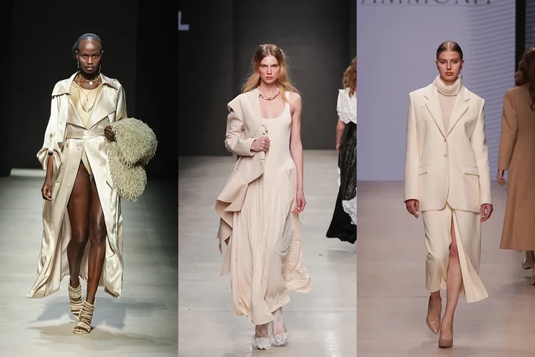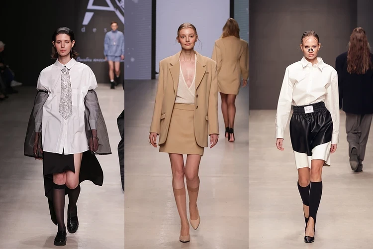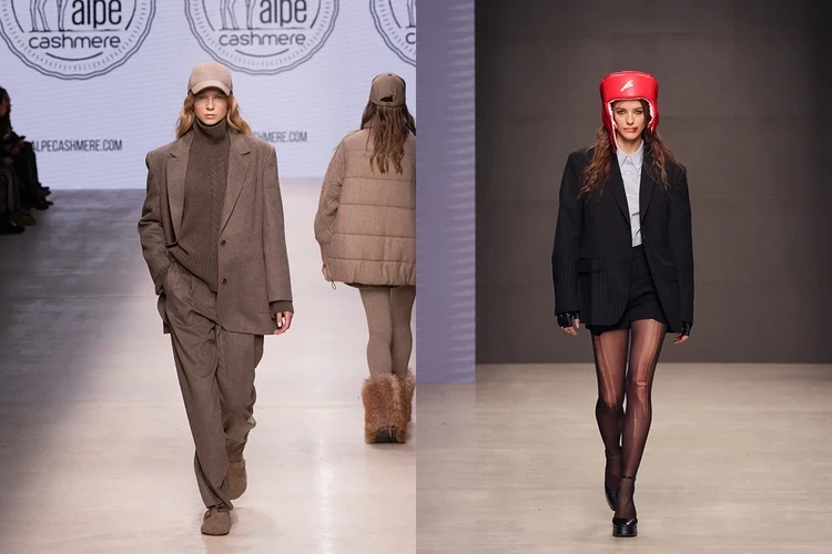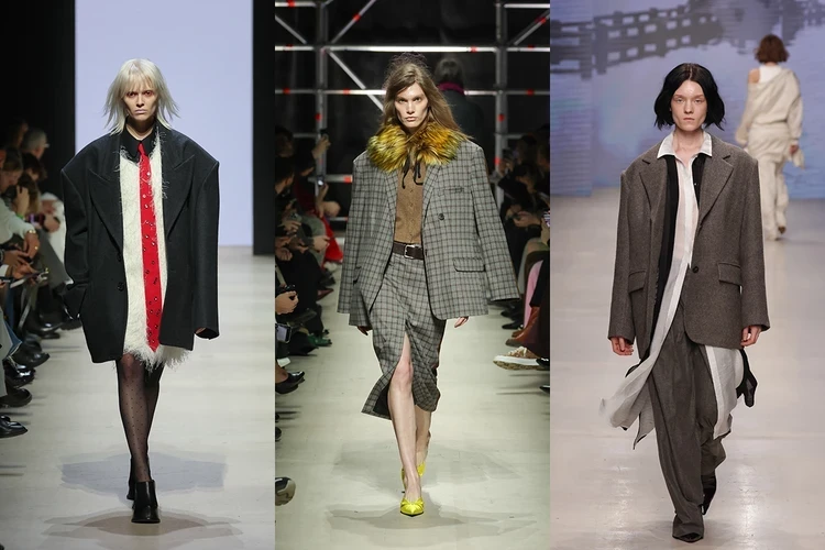 Cosarêve, Yana Besfamilnaya, Rogov. Фото: пиар Московской недели модыАктуальны жакеты, тренчи и пальто с увеличенной линией плеч. При этом, чем фактурнее плечи, тем лучше. Однако, не надо уходить в полный оверсайз. Объемный верх лучше балансировать более облегающим низом. В идеале выделять талию с помощью ремня или, например, платка.