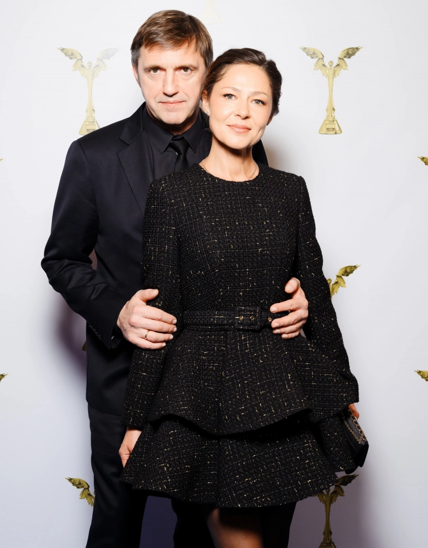 53-летний Владимир Вдовиченков вышел в свет с 44-летней супругой Еленой Лядовой. Актёры, как и многие другие звёзды, посетили кинопремию "Ника".