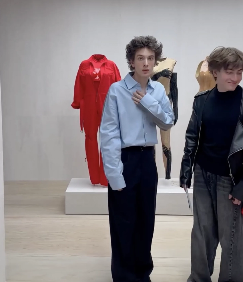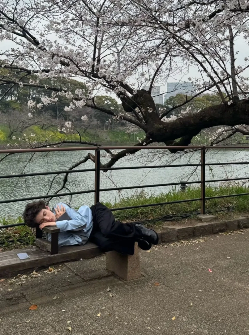 В Токио Эйдельштейн прилетел не один, а вместе с младшим братом Матвеем — с ним же он тусовался в Париже на показе Baalenciaga. Марк пришёл на мероприятие в голубой рубашке и серых брюках, а его брат — в образе total black. Позже актёр опубликовал в инстаграме* фото, на котором лежит на скамейке под цветочным деревом. Среди звёздных гостей выставки, помимо Марка, также были звезда "Белого лотоса" Кэрри Кун и другие знаменитости.