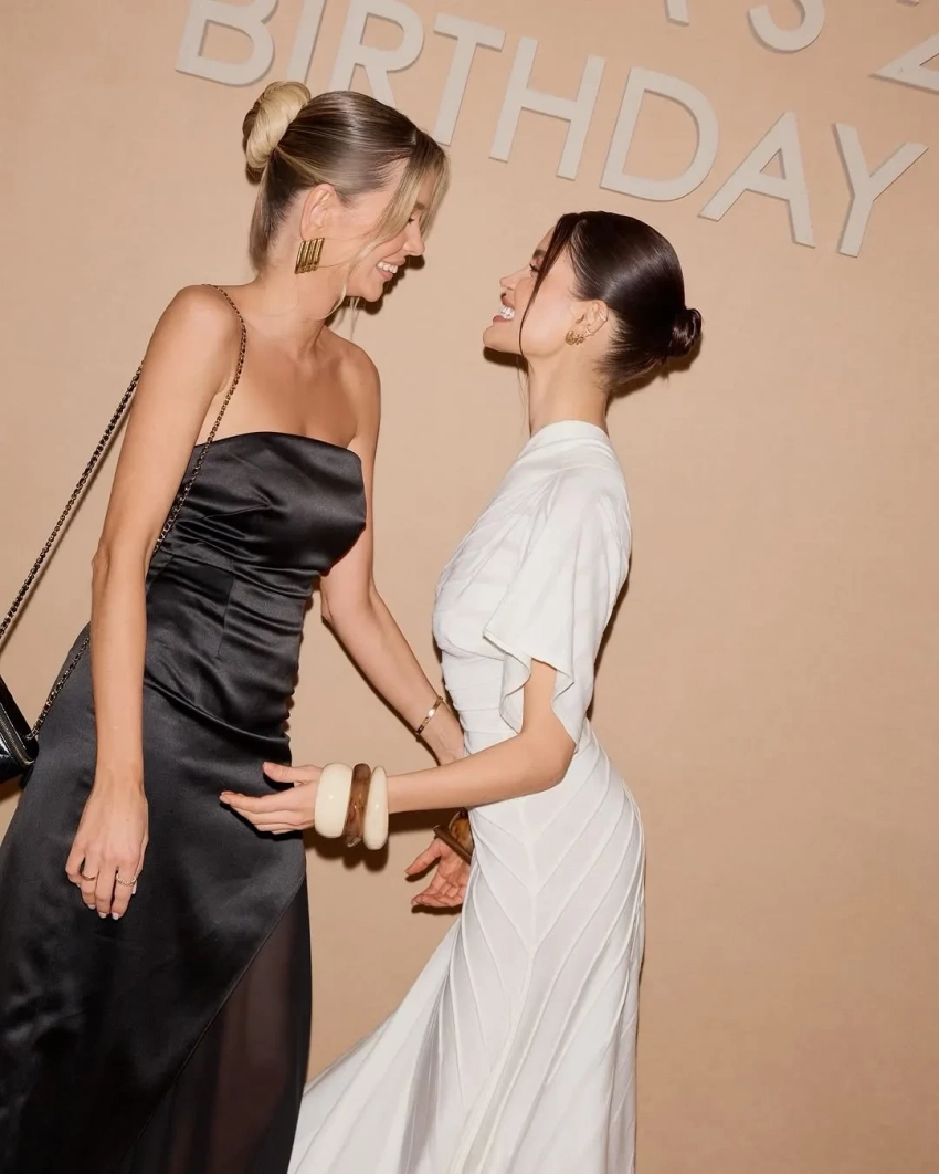 Судя по снимкам, дресс-кодом вечеринки стали чёрный и белый цвета. Мария появилась перед гостями в белом платье Alaia на одно плечо и дополнила образ массивными браслетами. Поздравить Лобанову пришла её мать Евгения и сестра Екатерина, а также основательница Дома красоты Bemônt Варвара Мазараки, визажист Валентина Гросс, модель Анастасия Бова и другие.