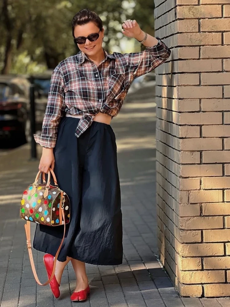 Татьяна просто обожает «двупалую» обувь. На самом деле, модель с раздвоенным носом называется Tabi, и ее создатель — Мартин Маржела (бренд Maison Martin Margiela). У Брухуновой есть «таби» на любой вкус — кеды, ботильоны или вот, например, красные балетки. Цена за пару — от 100 тысяч рублей. Алые пинетки модница сочетала с юбкой ниже колена, клетчатой рубашкой и сумкой Louis Vuitton. Волосы зализала назад, а вместе массивных очков для зрения надела стильные солнцезащитные. Наконец-то, образ 36-летней Татьяны соответствует ее возрасту, а не возрасту ее супруга.