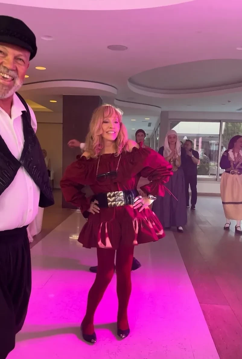 День рождения певица отмечала в мини-платье красного оттенка с широким ремнём на талии и открытыми плечами. Судя по фото, праздник прошёл на веранде дома семьи на Кипре, где, по данным СМИ, они сейчас живут. Торжество проходило у бассейна и было оформлено в розовых тонах: на столах, укрытых розовой скатертью, между букетами роз разных оттенков розового стояли бокалы и свечи в тон.