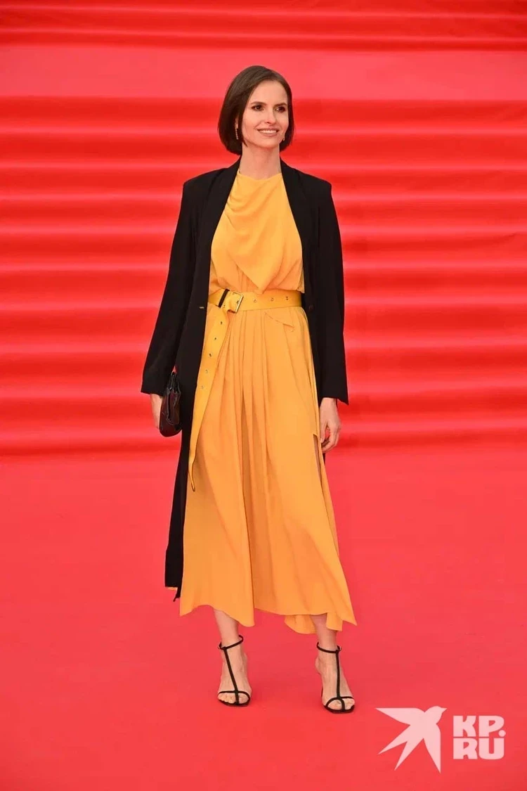 -У Елены прекрасная фигура и это горчичное платье мне очень нравится. Образ настолько гармоничный, что Елена смотрится как статуэтка «Оскара» на красной дорожке. Красавица! Тут идеально все.