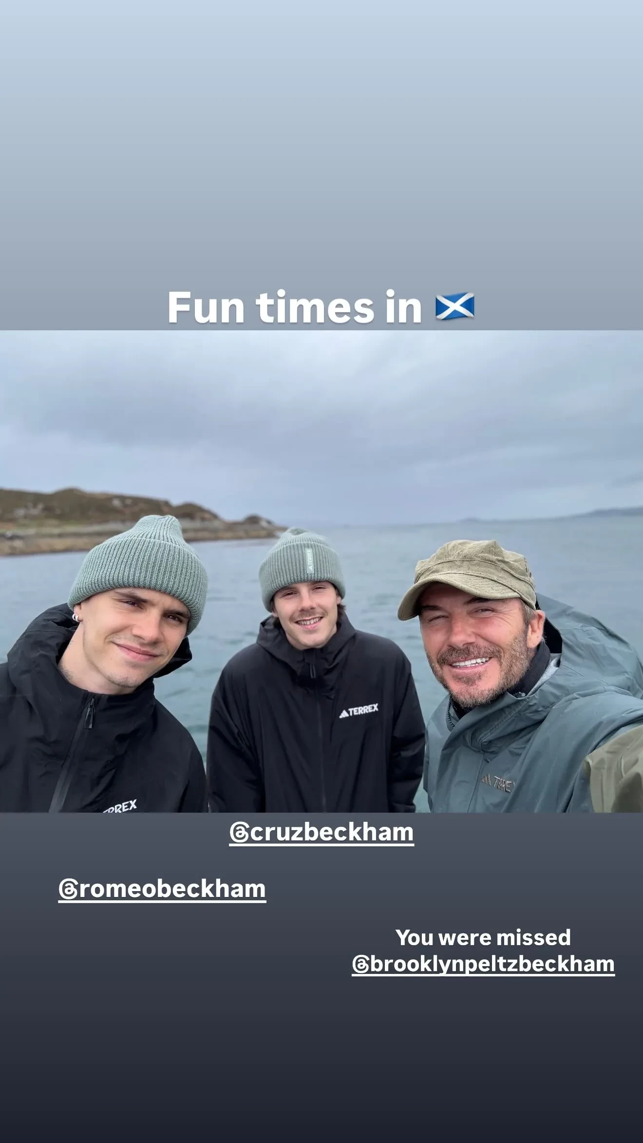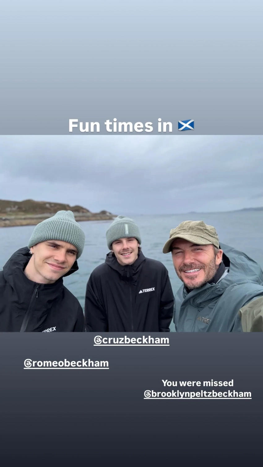 Дэвид Бекхэм с сыновьямиРомео и Круз БекхэмДэвид БекхэмДэвид БекхэмКруз БекхэмФото Дэвида БекхэмаКруз БекхэмРомео БекхэмДэвид Бекхэм с сыновьямиРомео БекхэмКруз и Ромео БекхэмДэвид Бекхэм с сыновьямиФото Дэвида БекхэмаПомимо прочего, одно из фото Бекхэм посвятил своему старшему сыну Бруклину, который не смог присоединиться к путешествию. Спортсмен отметил его на совместном снимке с другими сыновьями и подписал: "Тебя не хватало". Примечательно, что Бруклин не присутствовал и на других мероприятиях, приуроченных к юбилею отца, и не поздравил его в соцсетях.