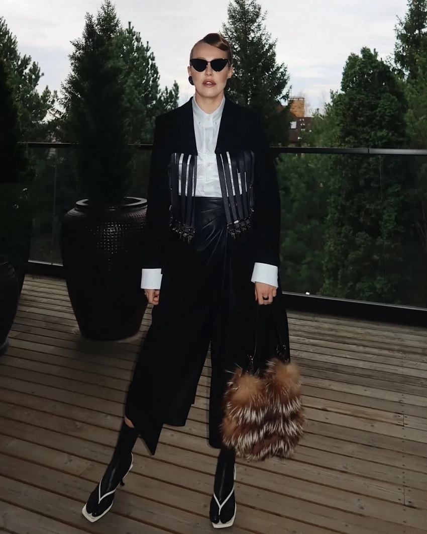 Ксения Собчак, которая недавно вернулась из путешествия по Африке, провела выходные в домашней обстановке в Москве и за городом. 43-летняя ведущая отметила День Победы за ужином с друзьями, куда пришла в тотал-луке Prada и розовой фуражке с перьями. Также Ксения посетила спектакль "А зори здесь тихие": в театре она выгуляла меховую сумку Fendi и босоножки The Row, которые она надела с кожаными носками. Тем временем восьмилетний сын Собчак от брака с Максимом Виторганом вместе с бабушкой Людмилой Нарусовой изучал подвиги своего прадедушки.