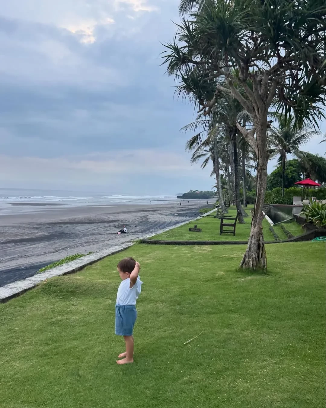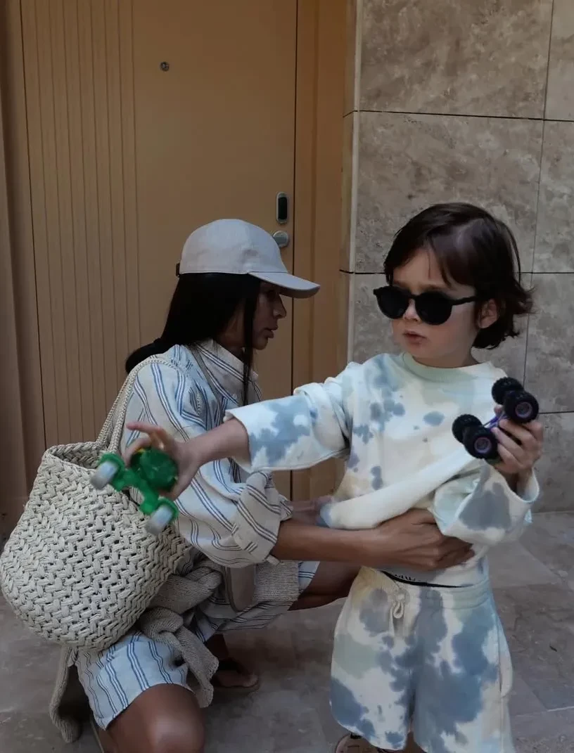 Беременная третьим ребёнком Регина Тодоренко тоже провела праздники с детьми и мужем Владом Топаловым, только не на отдыхе, а в командировке. В перерывах между съёмками ведущая проводит время с семьёй на "любимом острове", локацию которого она не раскрыла.