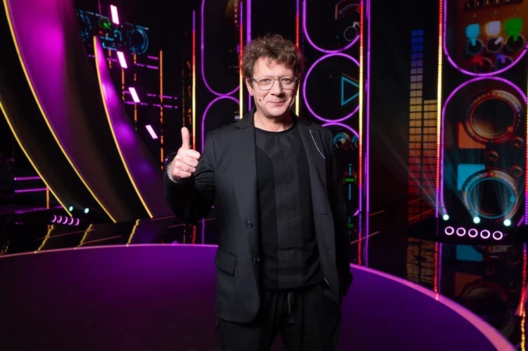 Владимир Маркони с участниками, которые изображают в одном из туров программы Михаила Шуфутинского. Здесь целых три Шуфутинских! Фото — телеканал «Россия»