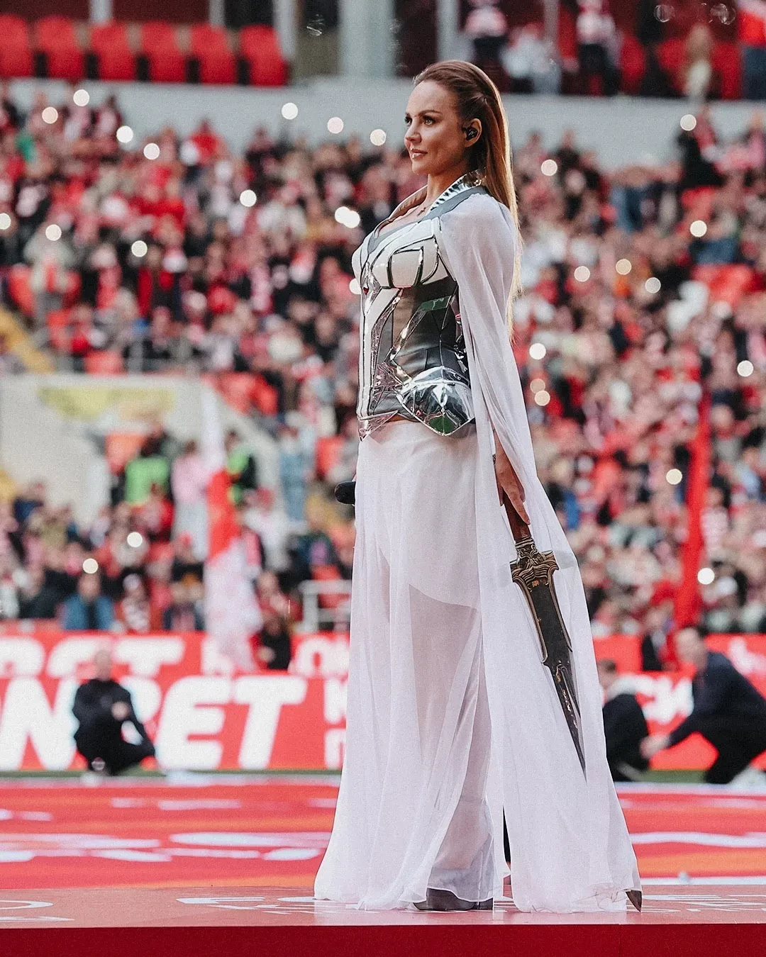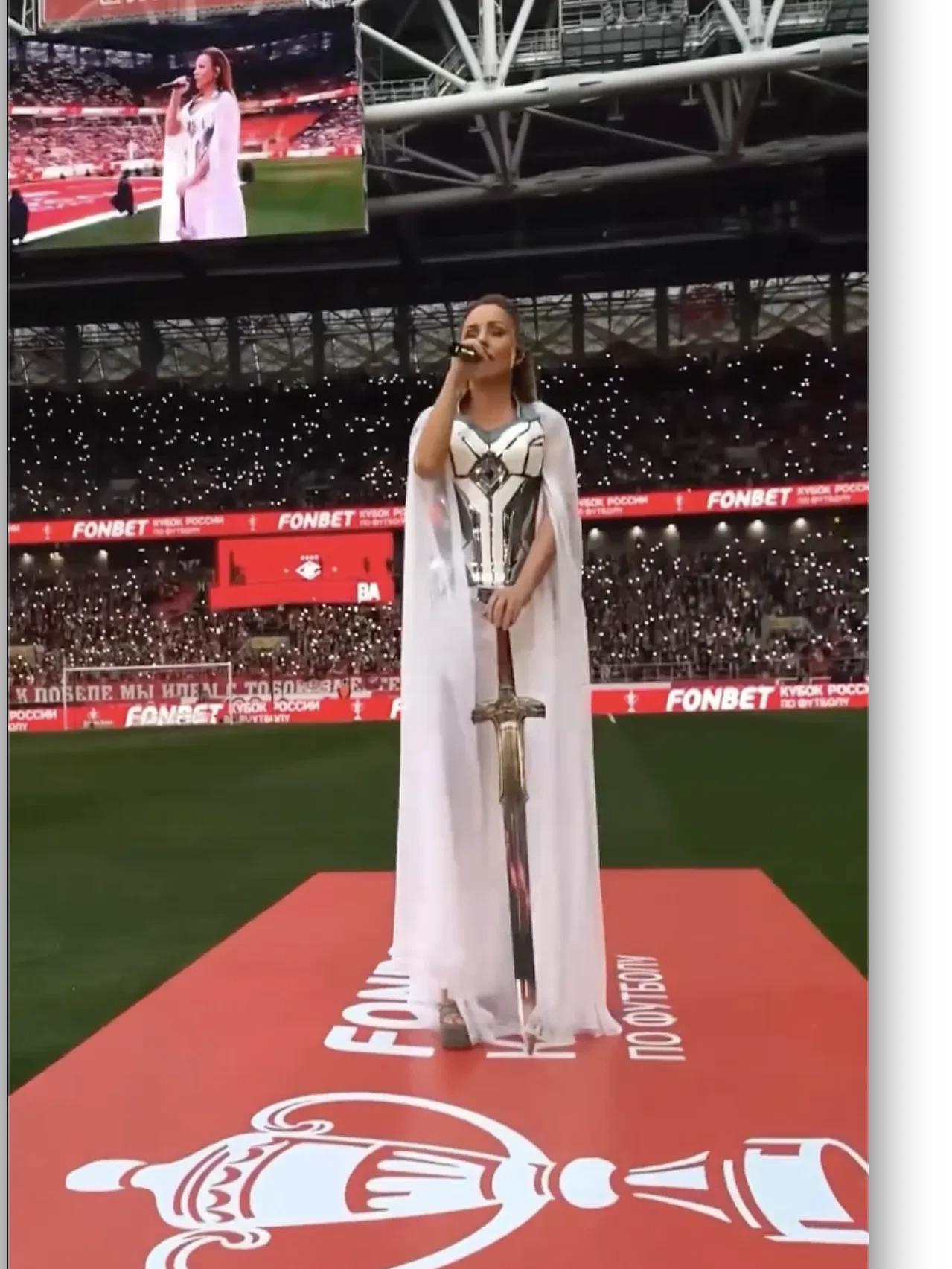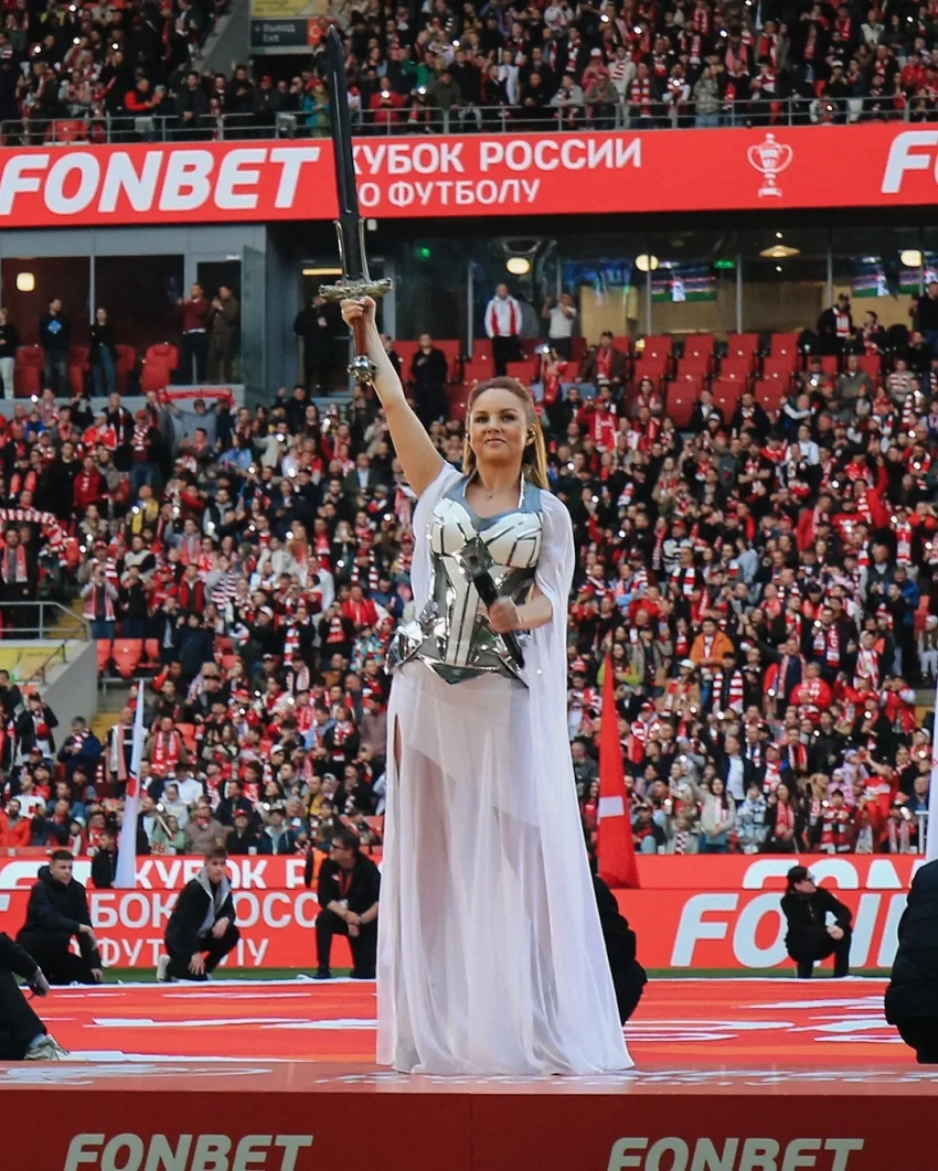 "Наша гладиаторка". МакSим выступила на матче "Спартака" и исполнила неофициальный гимн клуба "Знаешь ли ты"