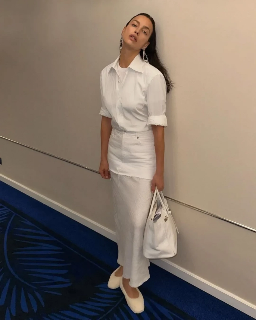 Ирина Шейк в этом году стала звездой фестиваля благодаря количеству выходов на красную дорожку. На церемонию открытия 39-летняя российская супермодель пришла в платье в горох Giorgio Armani, на следующий день позировала в винтажном Yves Saint Laurent, а на премьере "Досье 137" появилась в кутюре Elie Saab. Между дорожками Шейк выгуляла белый тотал-лук Maison Margiela, два образа Self-Portrait: зелёное платье с кроссовками и белое кружевное, "голый" наряд Les Filles d'Eva, костюм Dries Van Noten и другие образы.