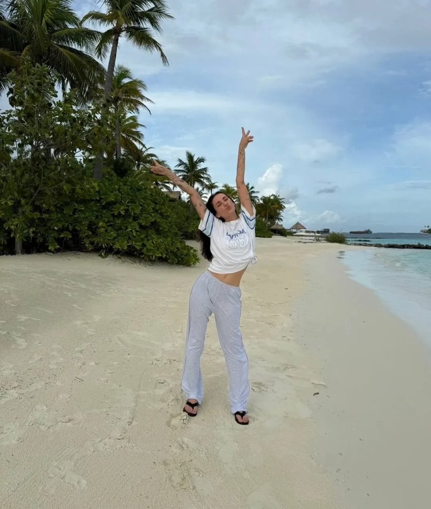 В своих соцсетях Карина поделилась фотографиями и видео с отдыха. На них можно увидеть её саму, позирующую в купальнике или прогуливающуюся по пляжу вместе с дочерью, а также Фёдора, катающего дочь на велосипеде и показывающего ей местные красоты.