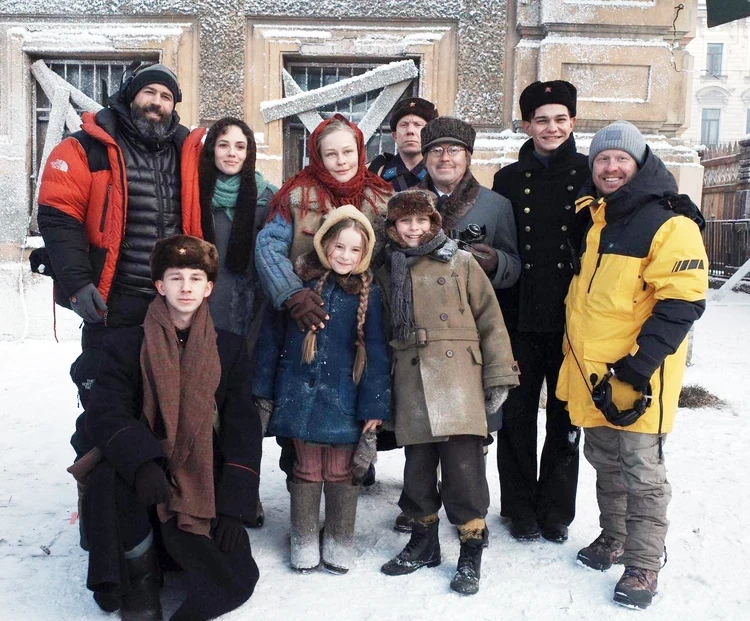 Пересильд и Милашин со съемочной группой фильма «Красавица» в Санкт-Петербурге