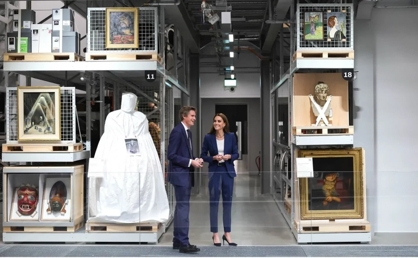Кейт Миддлтон, которая после объявления о ремиссии в борьбе с раком стала чаще появляться на публике, посетила музей V&A East Storehouse в Лондоне.