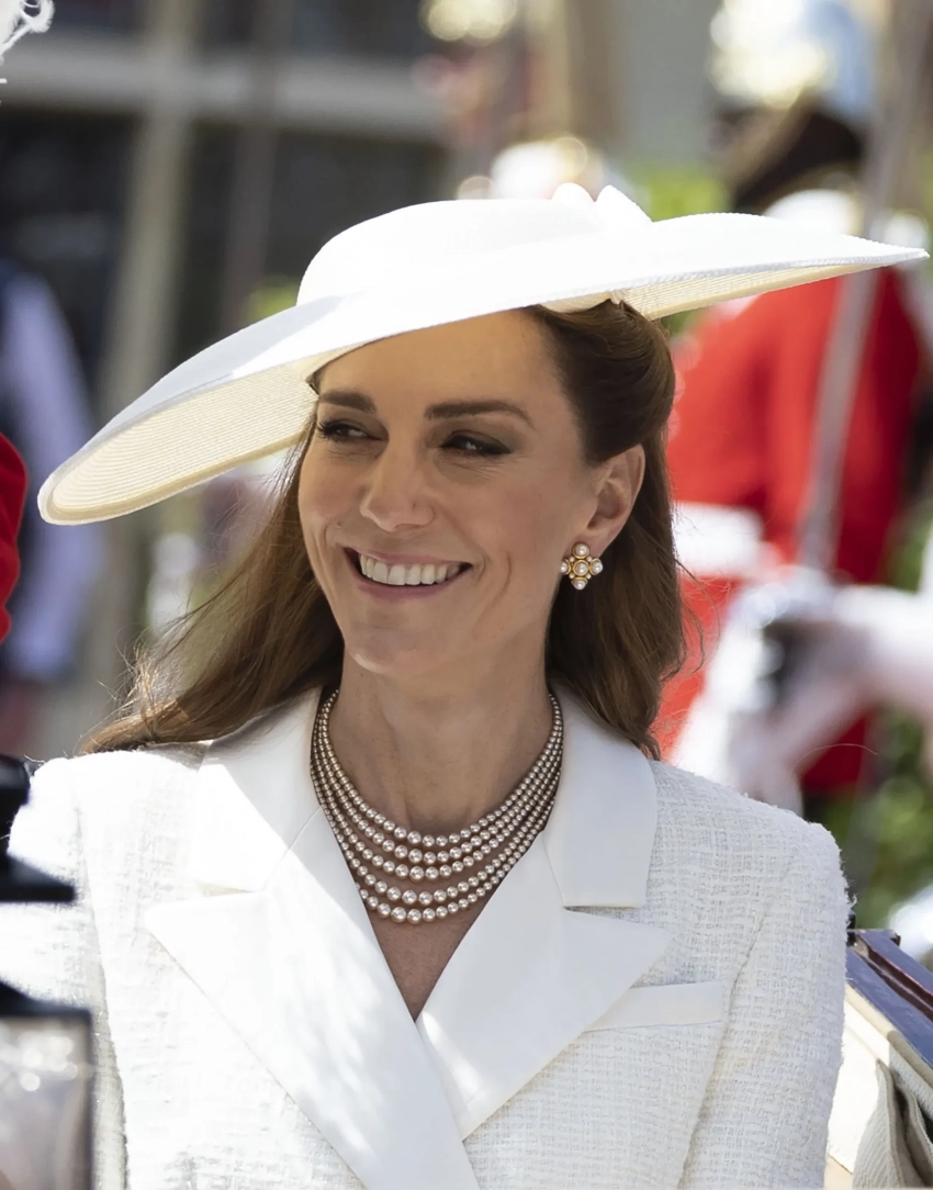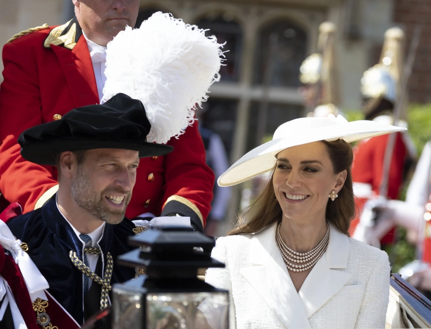 Мероприятие, которое по традиции проходит в часовне Святого Георгия в Виндзорском Замке, посетили король Карл III и королева Камилла, принц и принцесса Уэльские и другие члены королевской семьи. Для этого выхода в свет Кейт Миддлтон выбрала белоснежный костюм Self Portrait, который дополнила шляпой в тон. Уильям как член ордена был в церемониальном костюме и шляпе с плюмажем.