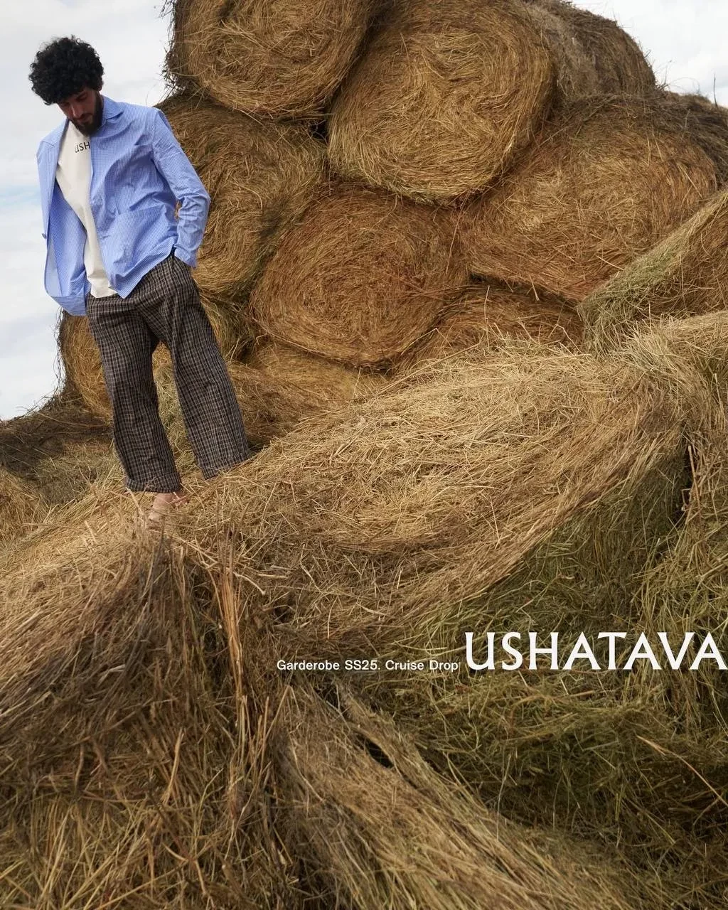 Ushatava сняли в кампейне популярного блогера Тимура Далгатова, который прославился своими рилсами* о жизни на ферме. Он прорекламировал коллекцию бренда Cruise Drop в рамках линии Garderobe SS25.
