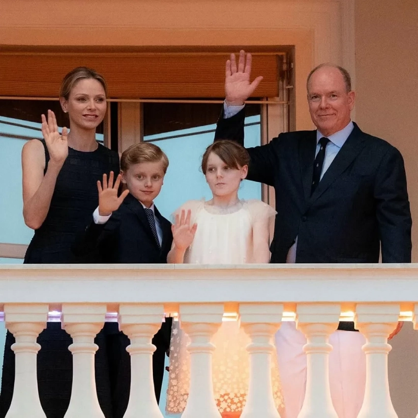 47-летняя княгиня появилась на мероприятии в чёрном платье, а её 67-летний супруг надел классический костюм с галстуком. Пара приветствовала гостей праздника на балконе здания вместе с 10-летними близнецами: наследным принцем Жаком и принцессой Габриэллой.