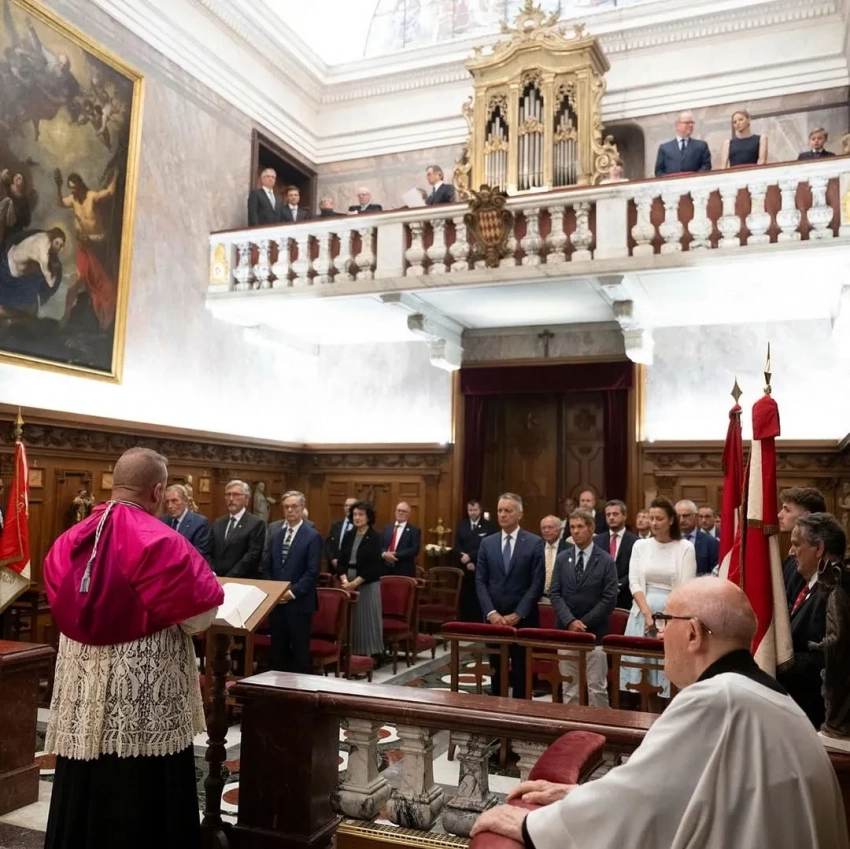 Княгиня Шарлен и князь Монако Альбер II, которые недавно посетили телефестиваль, вместе с детьми отметили праздник Святого Иоанна в Палатинской капелле.