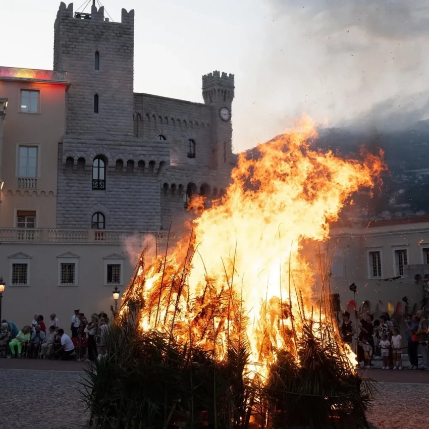 Княгиня Шарлен и князь Альбер с детьмиКнягиня Шарлен и князь Альбер с детьмиПраздник Святого ИоаннаНа празднике Святого Иоанна княжеская семья присутствовала на освящении Святых Даров и наблюдала за сожжением традиционного костра на Дворцовой площади, который символизирует летнее солнцестояние и празднуется с танцами вокруг него.