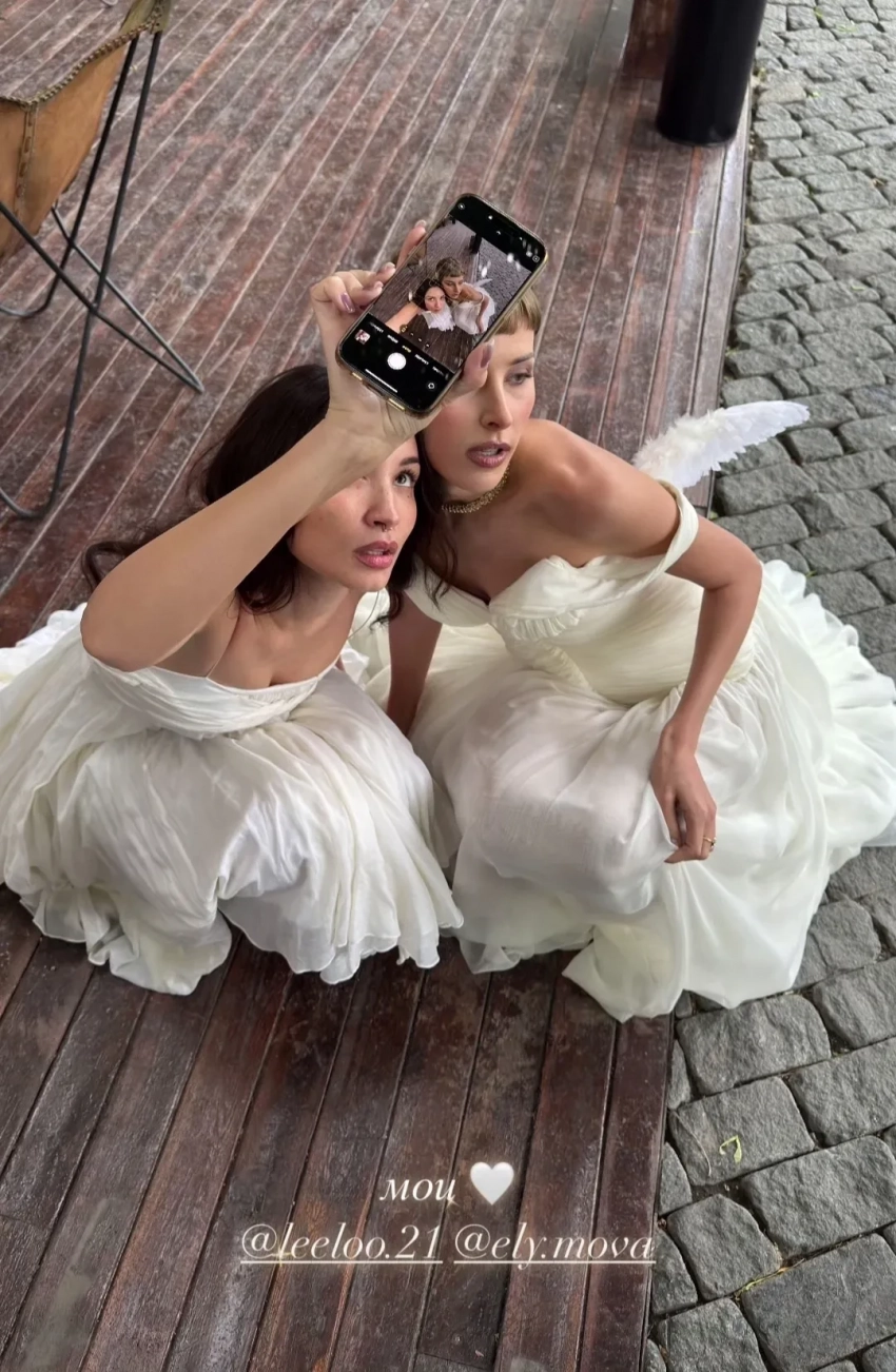 https://t.me/spletnik2006/34156Все гости были одеты соответственно дресс-коду вечера, темой которого были "Ангелы Ренессанса". Повсюду можно было увидеть белые платья с рюшами и кружевами, накладные крылья, корсеты и перья. Даже питомцев их хозяева нарядили в белое. Что касается именинницы, что она выбрала для вечера платье Ильи Migmoon, стилизованное Ксюшей Смо.