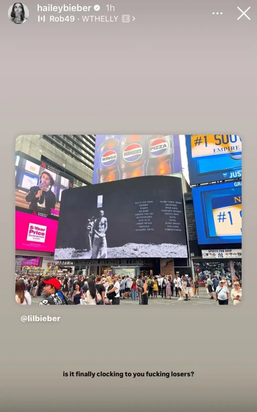 Сама Хейли косвенно подтвердила догадки фанатов о том, что все негативные новости об их семейной жизни в последний год были частью пиар-кампании, репостнув фото с баннером альбома и написав: "Теперь до вас дошло, лузеры?".