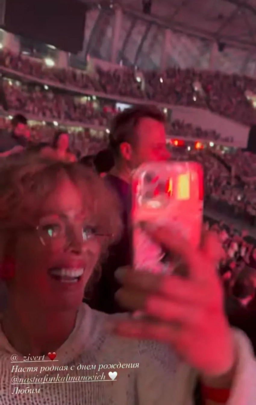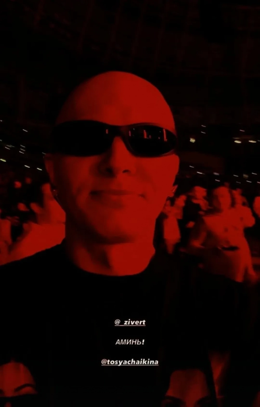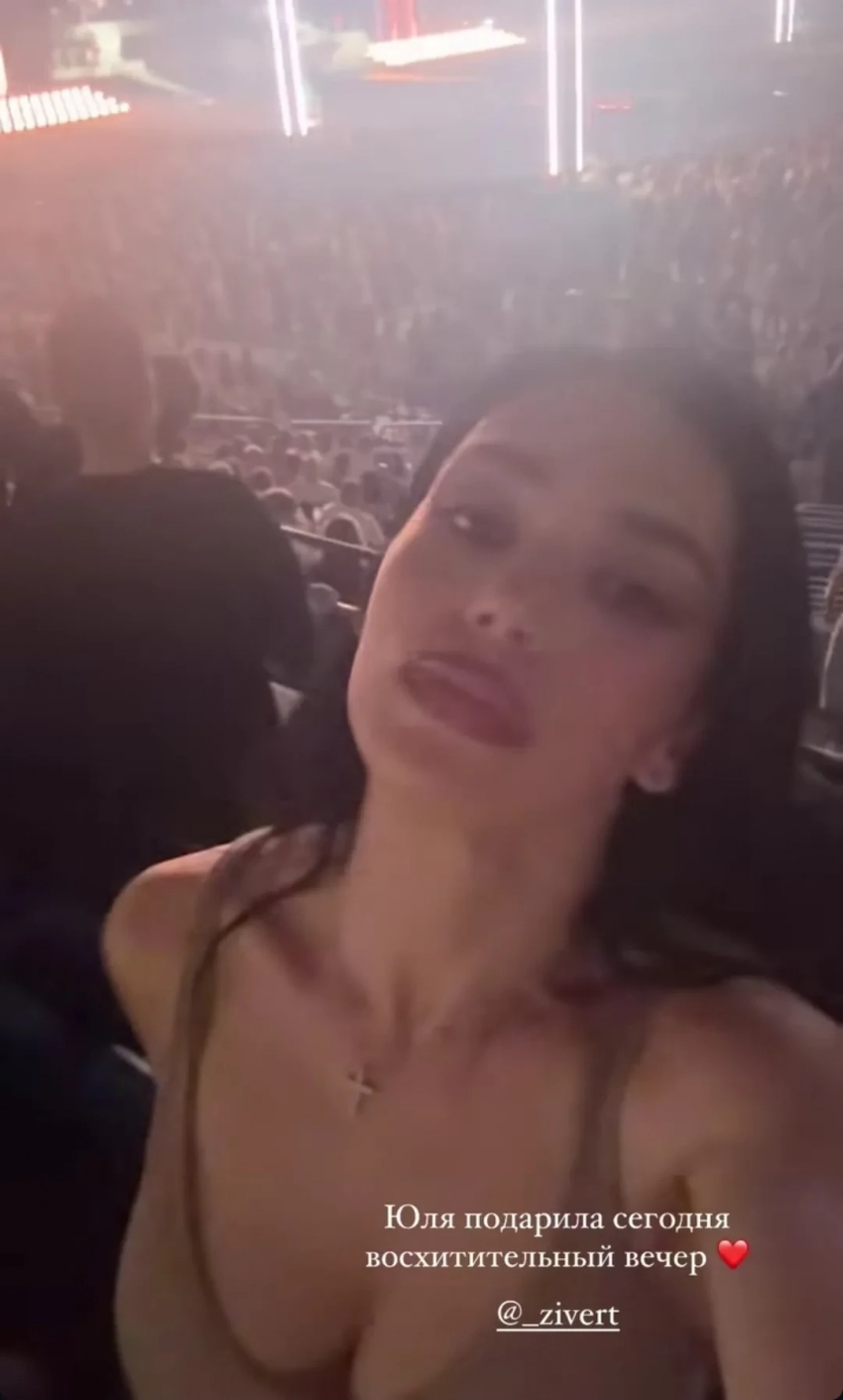 https://t.me/spletnik2006/35417На VIP-местах танцевали под композиции артистки многие медийные личности: представители светской Москвы и мира моды, коллеги Zivert и даже спортсмены. Среди прочих, на мероприятии были замечены Гоша Карцев, Олег Горчанин, Ольга Серябкина, Лина Дембикова, Валерия и Иосиф Пригожин, Ева Польна, Мадонна Мур, Маша Фёдорова, Алексей Жидковский, Инна Комбарова, Карина Мурашкина, хоккеист Евгений Малкин, бывший продюсер Земфиры* Анастасия Калманович.