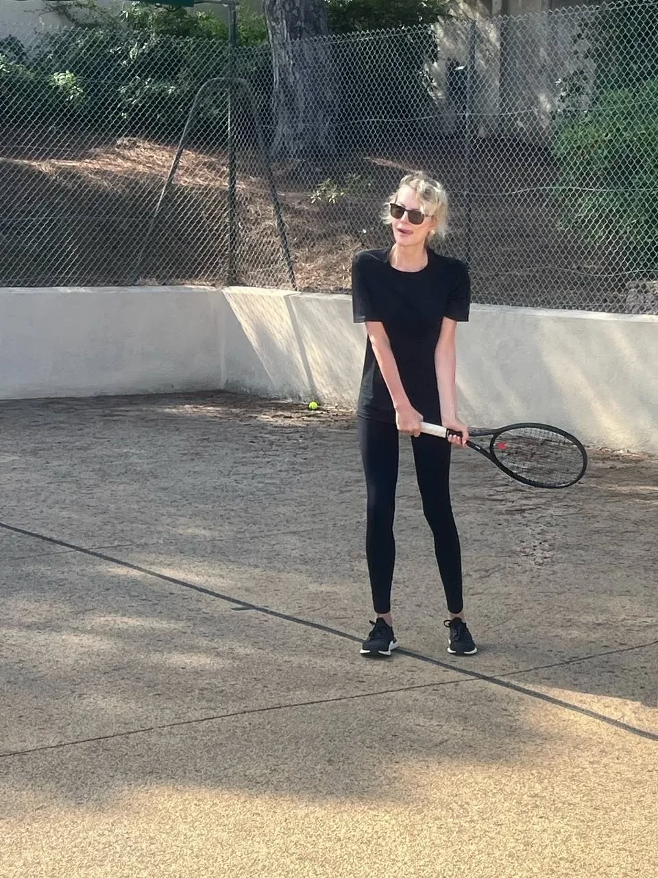Оказалось, дело не только в генах и косметических процедурах, но и в дисциплине. По словам Литвиновой, каждое утро она проводит на теннисном корте. Хоть она и не является талантливой теннисисткой (по её собственной оценке), всё равно уделяет час времени тренировке, которая длится с 9:00 до 10:00. В доказательство актриса приложила фото, на которых она запечатлена с ракеткой в руках.