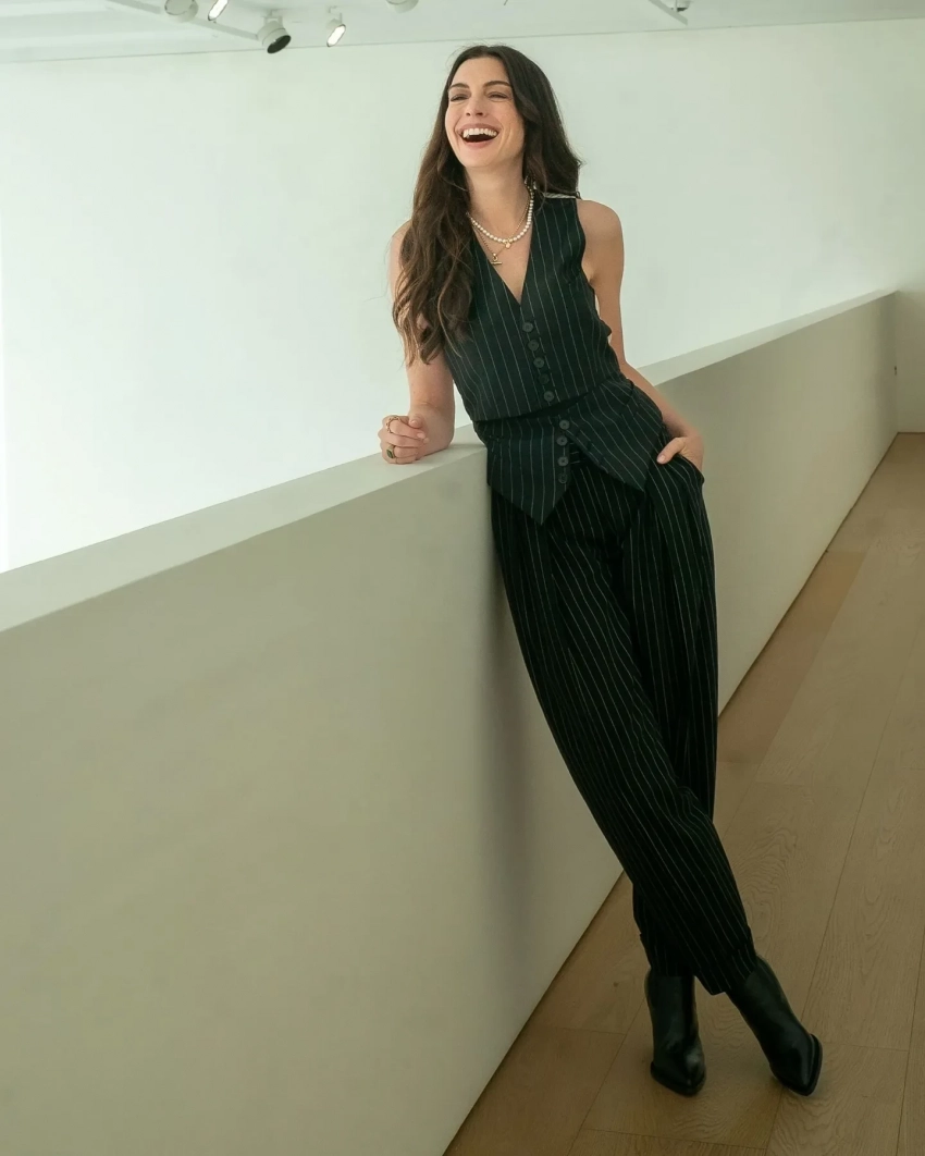 Энн Хэтэуэй показала, как будет выглядеть её героиня Энди Сакс в сиквеле культового фильма "Дьявол носит Prada". 42-летняя актриса опубликовала в инстаграме* фото с подписью: "Энди Сакс 2025". На снимке она позирует в полосатом костюме, дополнив образ чёрными ботильонами и ниткой жемчуга.