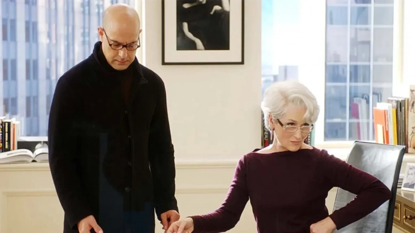 Стэнли Туччи и Мэрил Стрип в фильме "Дьявол носит Prada"Съёмки сиквела уже стартовали, однако детали сюжета пока держатся в секрете. По одной из версий, он будет следовать сюжету второй части одноимённого романа Лорен Вайсбергер: Миранде предстоит спасти своё издание от финансового краха, а её бывшая ассистентка Эмили придёт ей на помощь. Картина выйдет в мировой прокат 1 мая 2026 года.