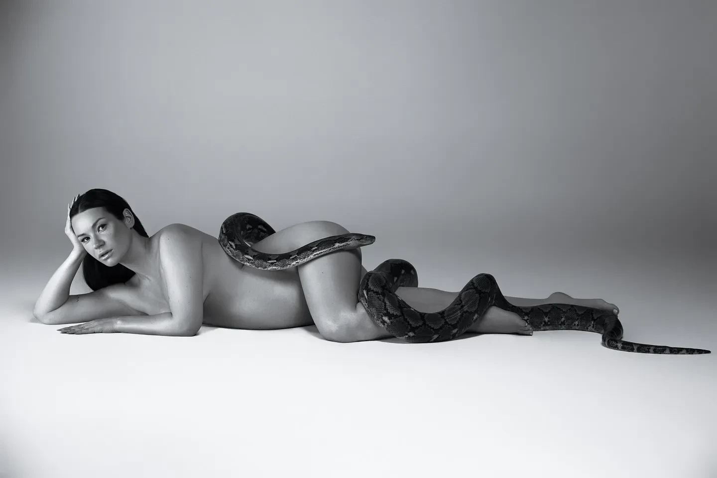 К слову, это не первый случай, когда Ида Галич снимается обнажённой во время беременности. Ранее она воссоздала культовый снимок Ричарда Аведона, снявшись без одежды с питоном.
