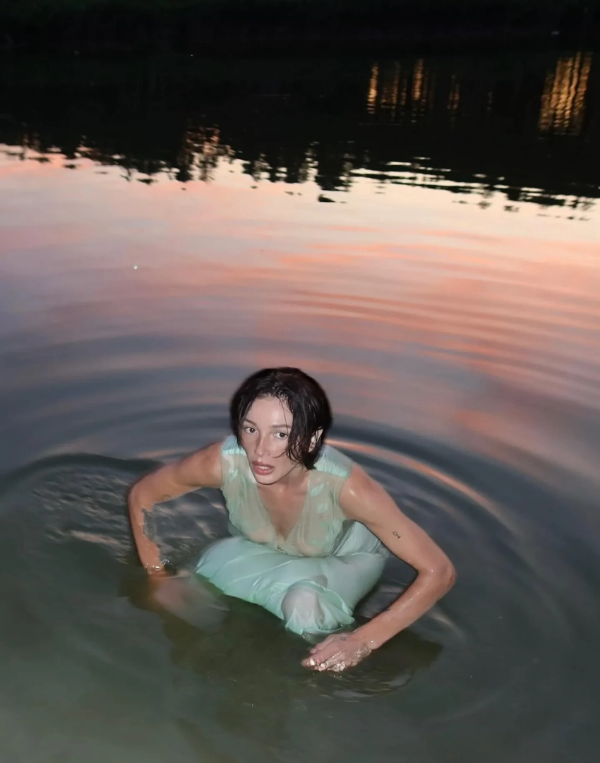 34-летняя Настя Ивлеева опубликовала в инстаграме* серию "голых" снимков. На фото блогерша позирует по пояс в реке в прозрачной комбинации без бюстгальтера.