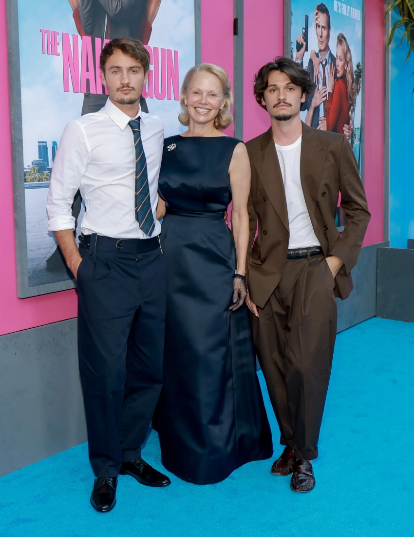 58-летняя Памела Андерсон пришла на премьеру в платье Thom Browne и в компании 29-летнего Брэндона и 27-летнего Дилана, которых она родила от первого супруга Томми Ли. 73-летний Лиам Нисон позировал рядом с Памелой и со своими сыновьями — 28-летним Дэниелом и 30-летним Майклом от покойной супруги Наташи Ричардсон.
