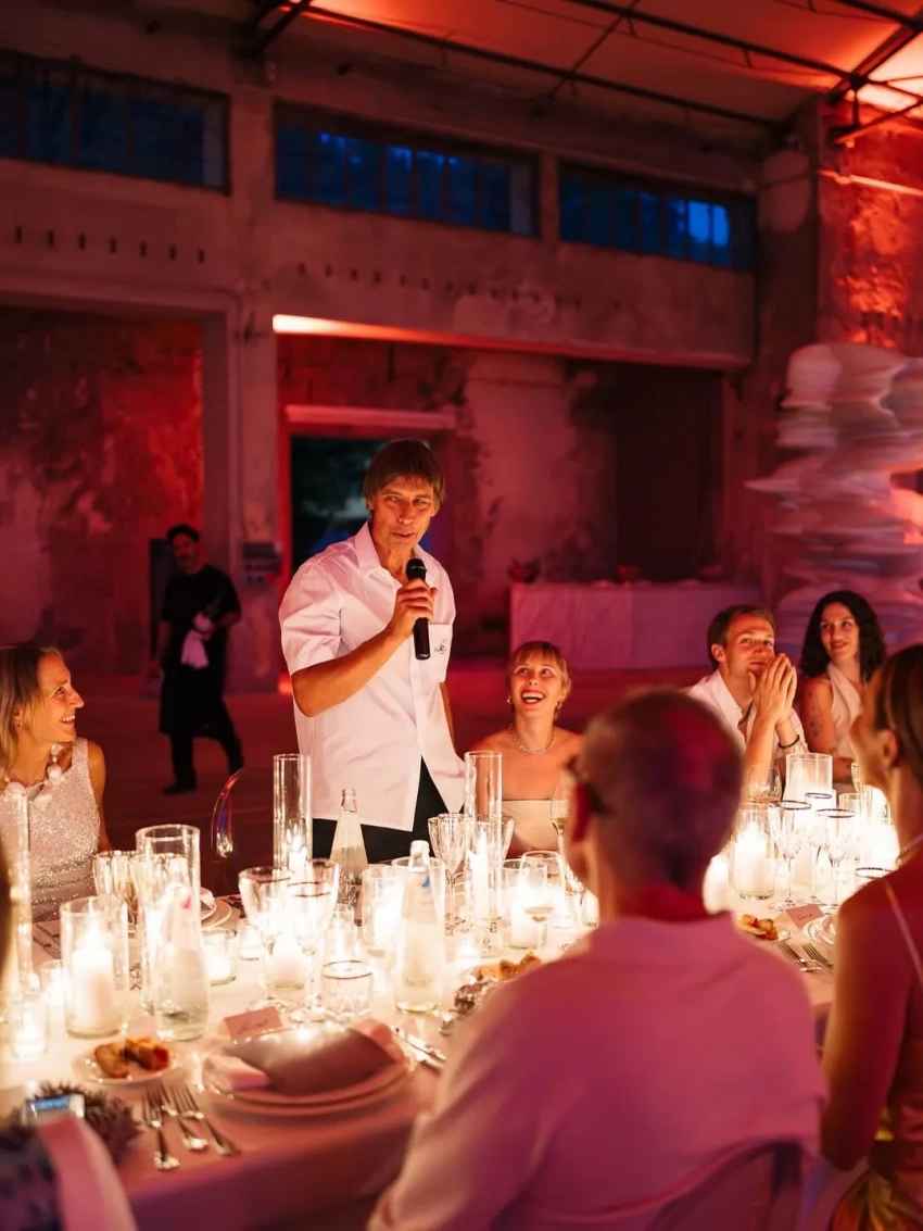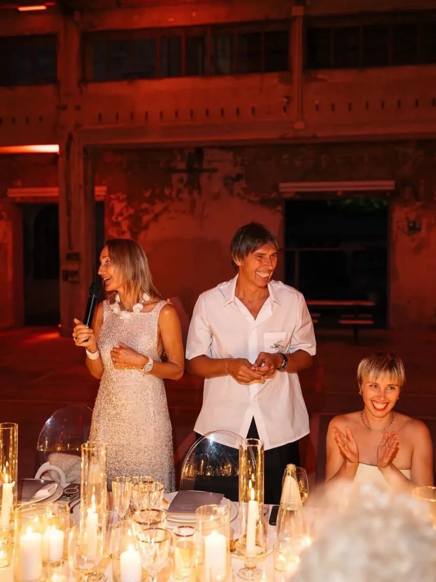 Бывший генеральный директор "Белой дачи" Владимир Цыганов стал лауреатом итальянской поэтической премии Кардуччи. Бизнесмену вручили награду за лучшие иностранные стихи, переведённые на итальянский язык. В честь этого супруга Цыганова Оксана Бондаренко организовала гала-ужин, на котором собрались друзья и близкие пары, в том числе их дочери Алина и Миа.
