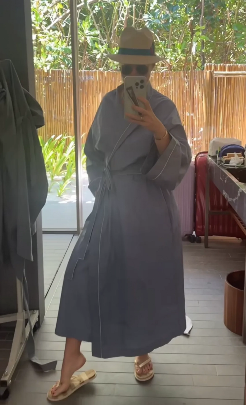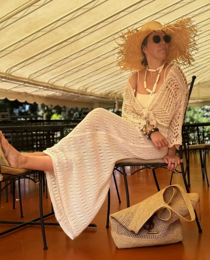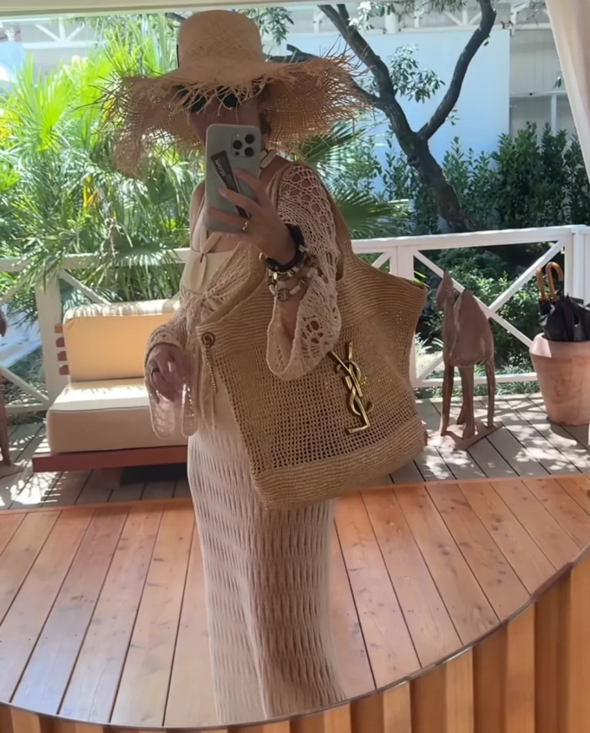 Ксения выбрала для похода с сыном на пляж вязаный комплект бренда Monochrome, соломенную шляпу и плетёную сумку Yves Saint Laurent. Также на днях Собчак показала подписчикам свой новый халат бренда The Row, за что её "отчитал" восьмилетний Платон. "Мам, ты бизнес-гёрл, красотка. Ну харэ уже халатом хвастаться (орфография и пунктуация автора сохранены. — Прим. ред.)", — заявил ребёнок. Ксения отметила, что "не знает, где он взял такое выражение".