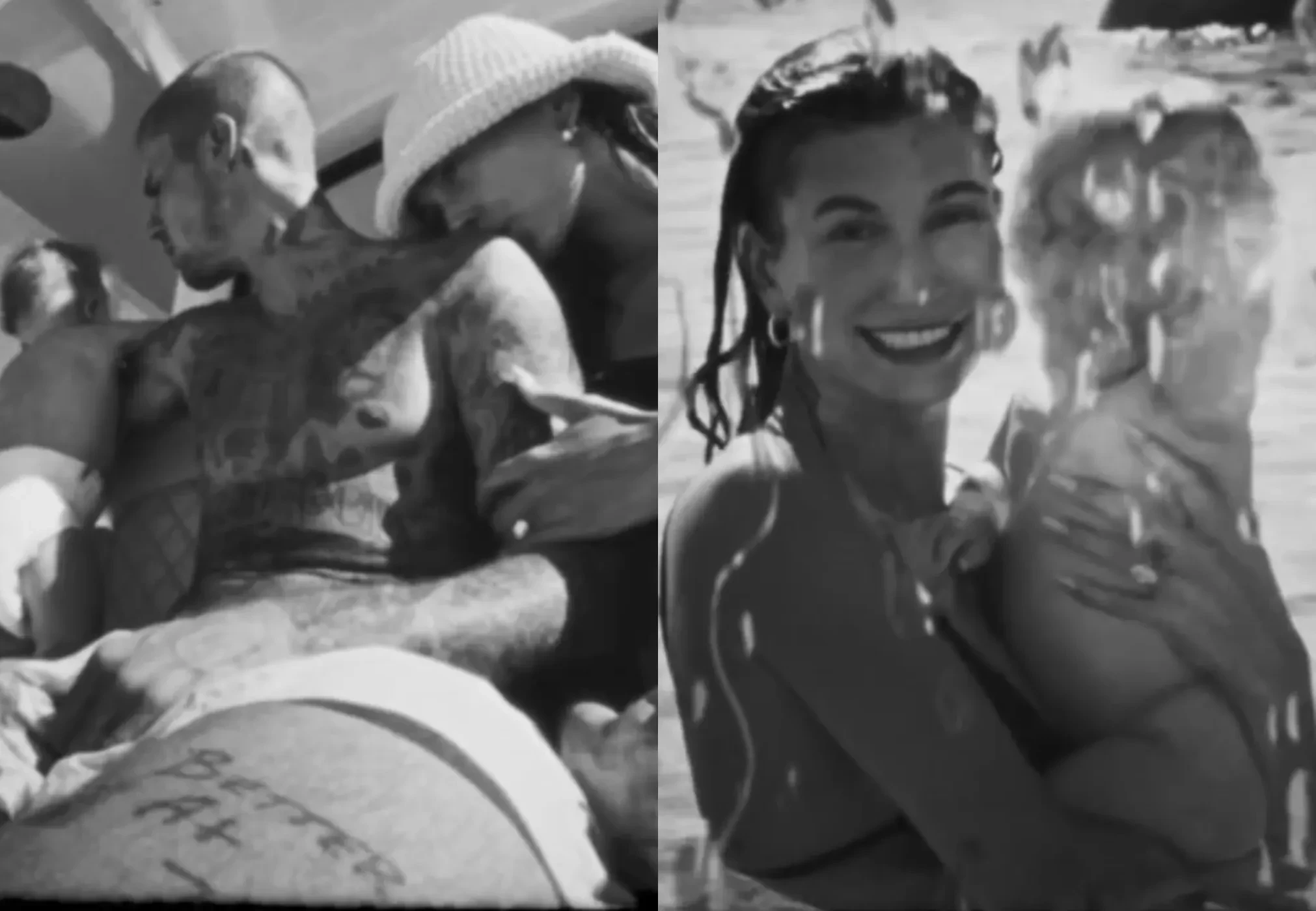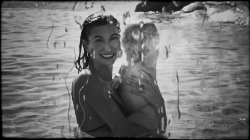 В видео, стилизованном под олдскульное чёрно-белое плёночное видео, вся семья отдыхает вместе на яхте, Джастин целует ножки Джека, а Хейли позирует с ним на руках в море и обнимает мужа.