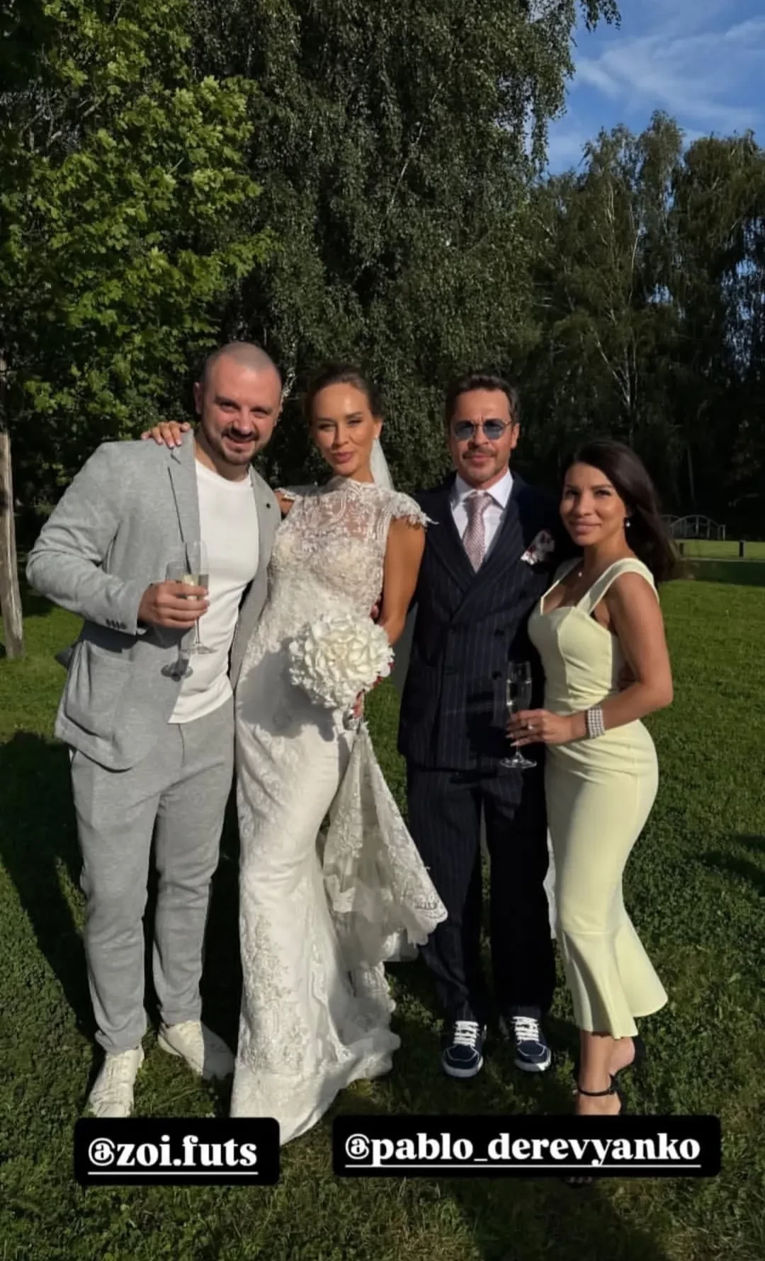 https://t.me/spletnik2006/37450Свадьба Зои Фуць и Павла ДеревянкоСвадьба Зои Фуць и Павла ДеревянкоСвадьба Зои Фуць и Павла ДеревянкоСвадьба Зои Фуць и Павла ДеревянкоСвадьба Зои Фуць и Павла ДеревянкоСвадьба Зои Фуць и Павла ДеревянкоВ своих соцсетях сами молодожёны и гости праздника активно публикуют фотографии и видео со свадьбы. Из них мы узнали, что на празднике не обошлось без "похищения" невесты (чтобы вернуть любимую, Деревянко пришлось отдать 5 млн рублей) и шуточной драки за букет невесты между подругой Зои и 14-летней дочерью Павла Варварой.