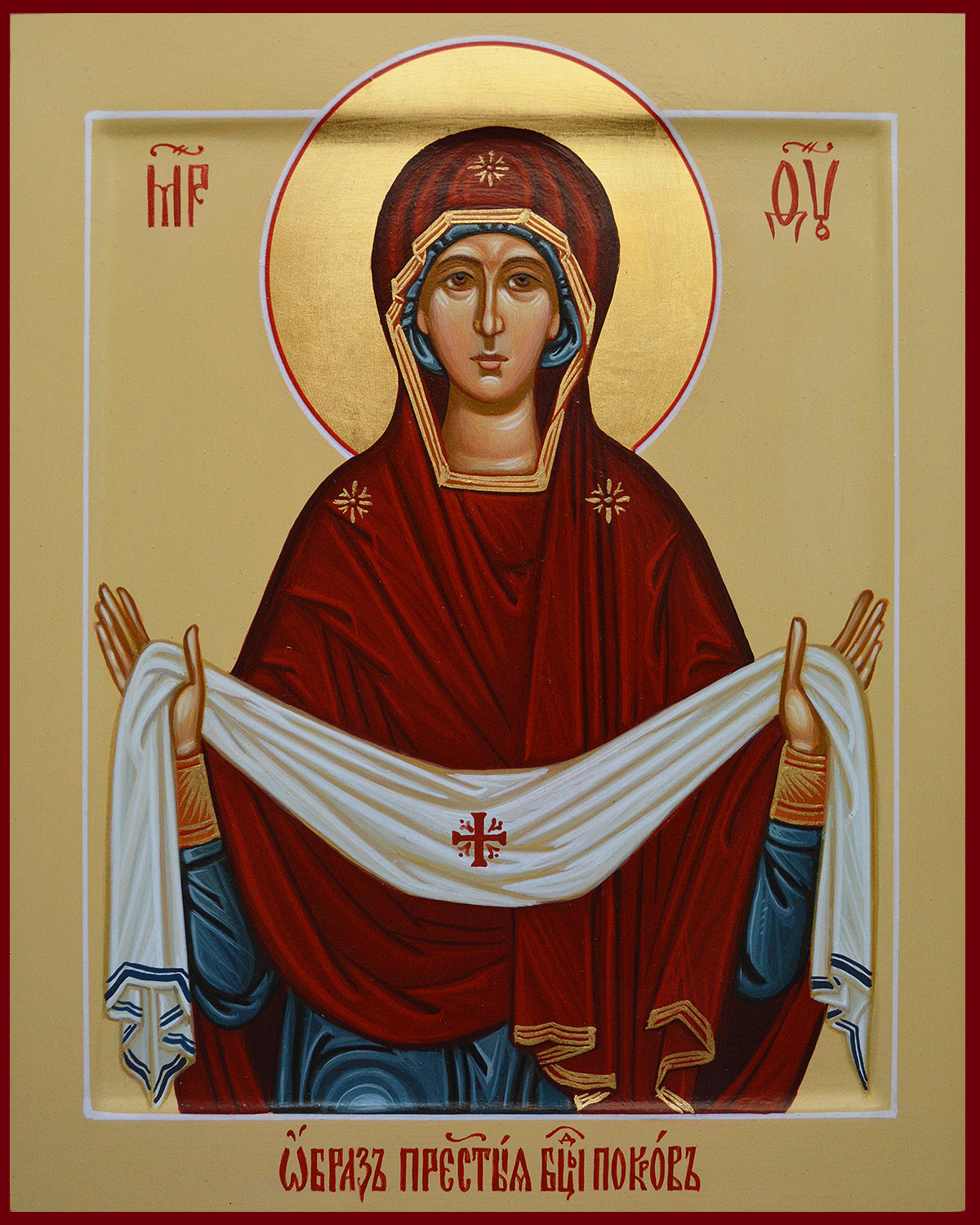 Богоматерь молилась за спасение православных, а затем сняла с головы покров и распростерла его над молящимися, при этом от платка исходило божественное сияние. Легенда гласит, что Богоматерь исчезла, совершив обряд, а вместе с ней исчез и ее покров, хранившийся в церкви, после чего сарацины покинули окрестности Константинополя. Позже юродивый, которому было видение, был причислен к лику святых, а его ученик — к лику блаженных.