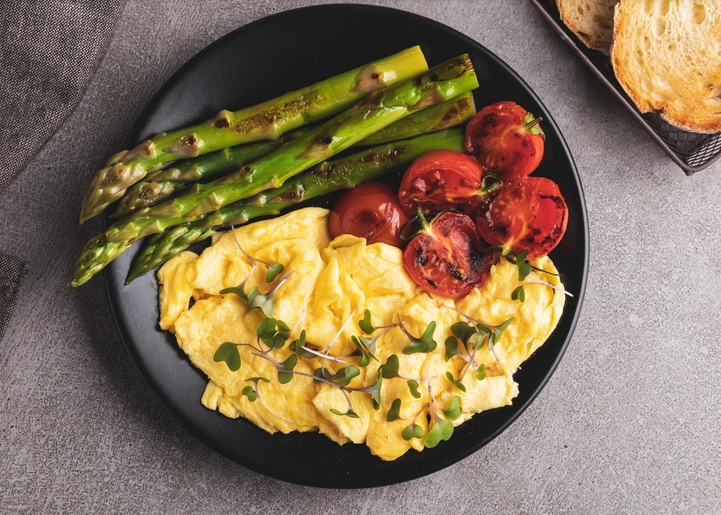 Легкое и быстрое блюдо, идеальное для ленивого вечера. Спаржа — низкокалорийный овощ, богатый витаминами.