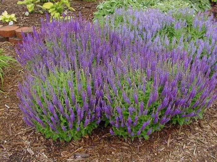 Шалфей дубравный — этот вид известен своей морозостойкостью. Он может достигать 90 см в высоту и цветет синими или фиолетовыми цветками. В народной медицине его часто используют для лечения простуд и воспалений, а в прошлом считали магическим средством, которое очищало пространство.