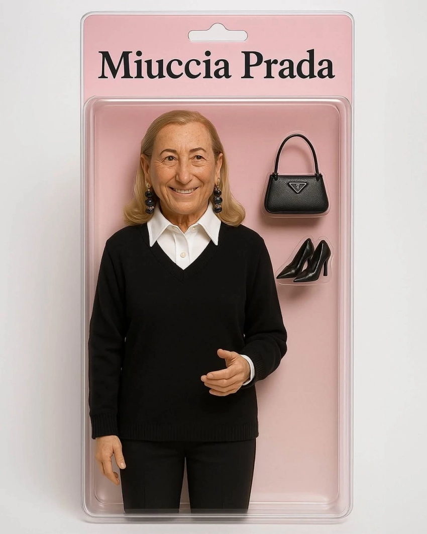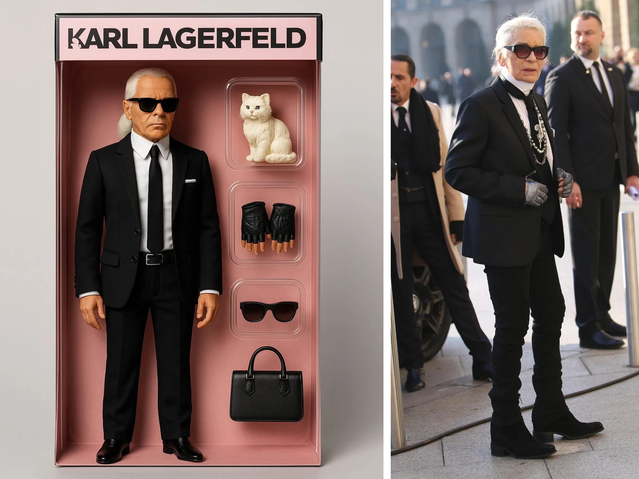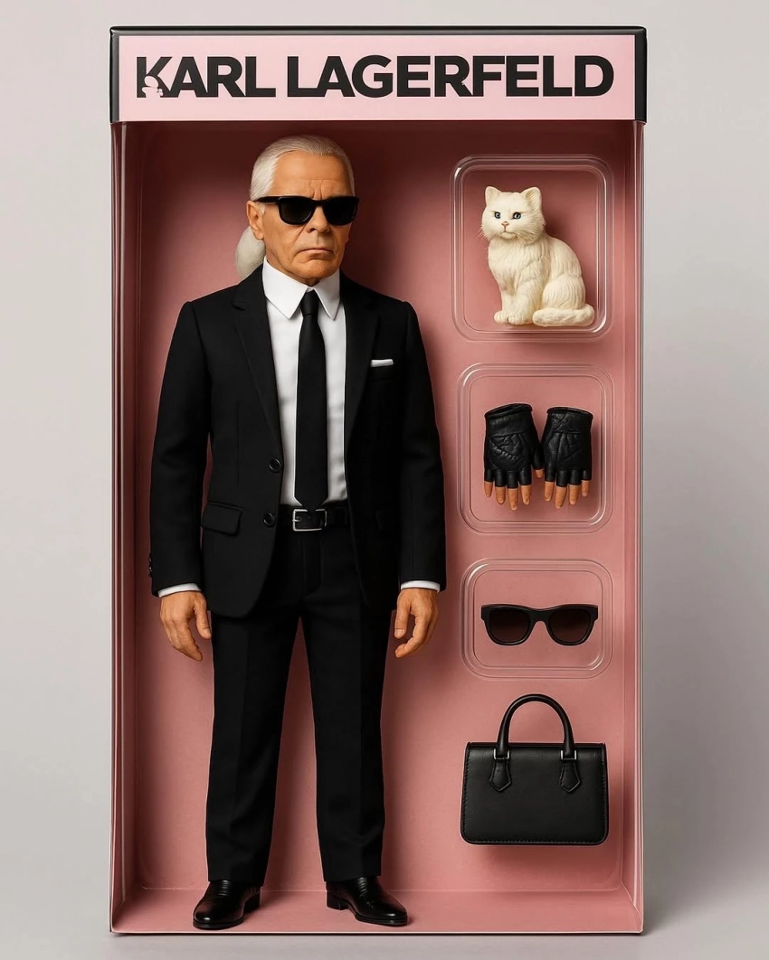 Следом за мемами и мультяшными картинами появились изображения знаменитостей в виде коллекционных кукол. Дональд Трамп, Карл Лагерфельд с кошкой Шупет, Жан-Поль Готье с фирменным парфюмом, Рик Оуэнс с гантелями — кажется, кукольный мир теперь открыт для всех. ИИ безошибочно копирует внешность, любимые аксессуары и даже стилизует упаковку фигурки в стиле настоящего магазина игрушек.