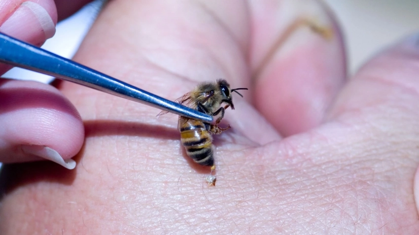 Укус пчелы выглядит как круглое уплотнение с красным ободком. Ключевая особенность — жало пчелы, похожее на гарпун, остаётся в коже и вызывает зуд и боль. Пчёлы не нападают первыми, но если уж укусили — яд вызывает воспаление.