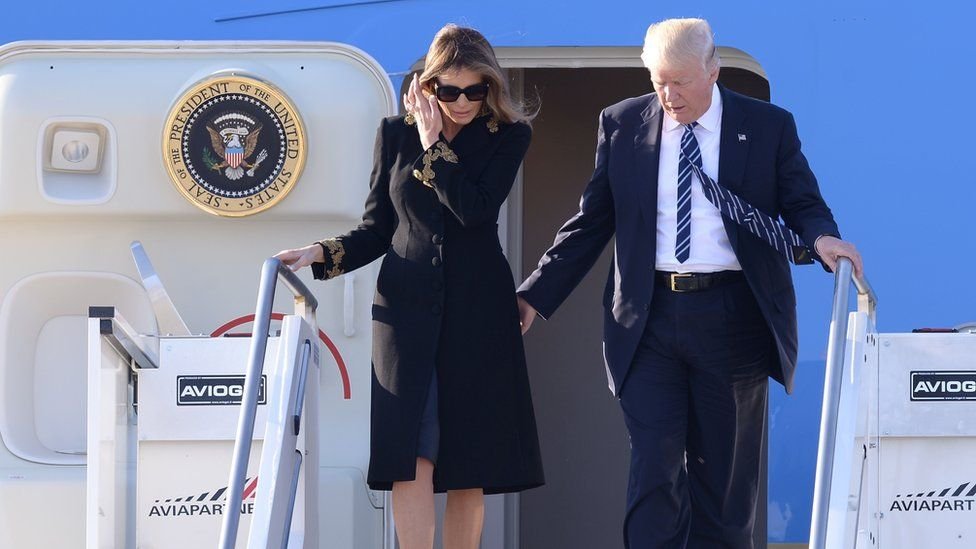 В прессе бурно обсуждались два момента - в аэропорту Бен-Гурион и в Риме, когда Трамп пытался протянуть Мелании руку, а она ее оба раза отбросила.