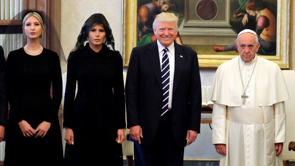 Момент был, конечно, неловким, и очень даже может быть, что журналисты тут раздули из мухи слона. Но факт остается фактом - любое публичное проявление холодности в отношениях Дональда и Мелании не остается без внимания. Что тут сказать... нелегко быть хозяином Белого дома. И конечно же, супруга президента - женщина чрезвычайно элегантная. Встреча Трампа с папой римским была непростой: слишком уж диаметрально противоположны взгляды Трампа и понтифика на такие вопросы, как иммиграция, торговля оружием и угроза климатических изменений. Несмотря на взаимные реверансы, свидетельствуют присутствовавшие, чувствовалось некоторое напряжение. Разногласия ясно очертил в своем твите близкий к папе кардинал Петер Турксон. "Папа Франциск и президент Трамп обратились к миру ислама, чтобы изгнать из него насилие. Один предложил мир и диалог, другой - оружие".