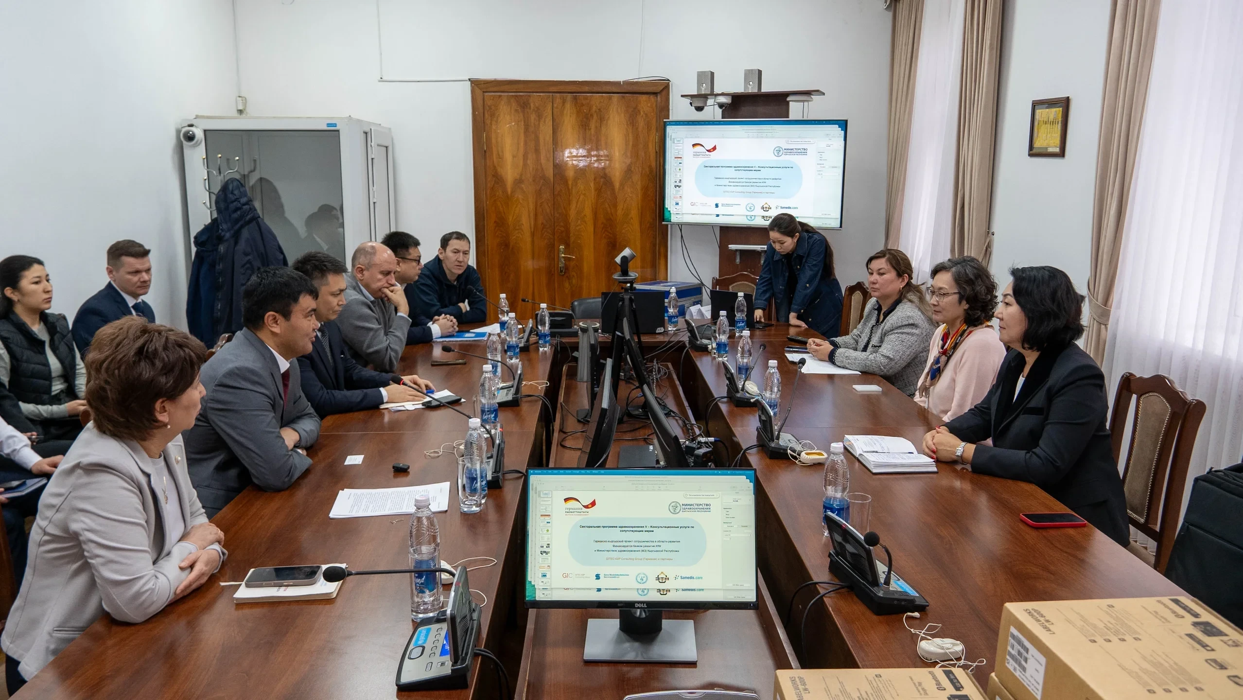 Вице-министр здравоохранения Айбек Маткеримов провел встречу с представителем Германского банка развития (KfW) Индирой Молдогазиевой и менеджером проекта из консалтинговой компании GITEC-IGIP Керез Келишовой. Основной темой обсуждения стало внедрение системы цифрового учета медицинского оборудования, известной как SAMEDIS.