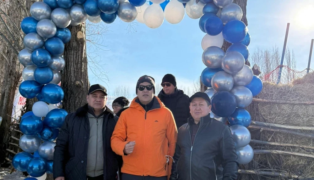 Эдиль Байсалов на открытии лыжной школы в Ак-Булаке.