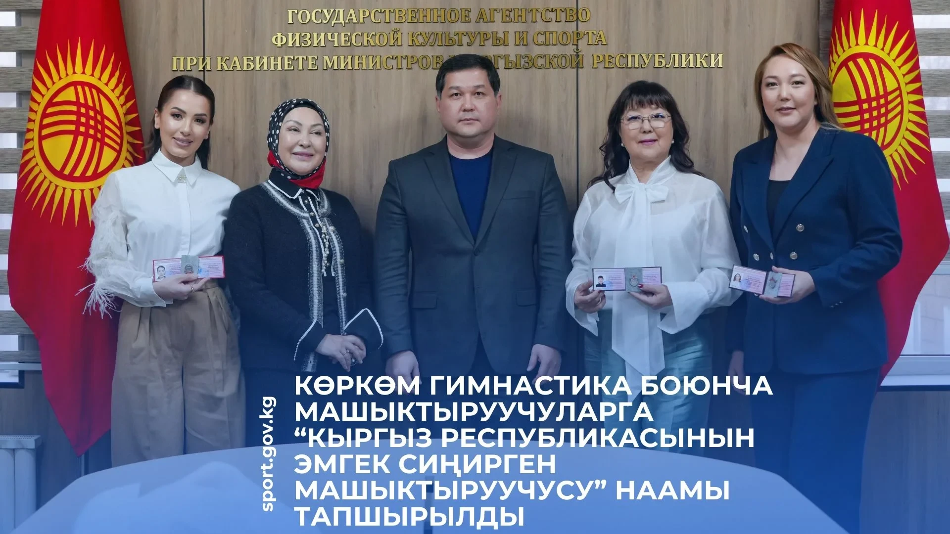 Сегодня, 16 января, состоялась торжественная церемония, на которой директор Государственного агентства физической культуры и спорта Казыбек Молдажиев вручил три почётных звания «Заслуженный тренер Кыргызской Республики». Как сообщается в пресс-службе агентства, награды были вручены Гульнаре Мамыркуловой, Жаныл Каймазаровой и Сабине Ибраимовой.