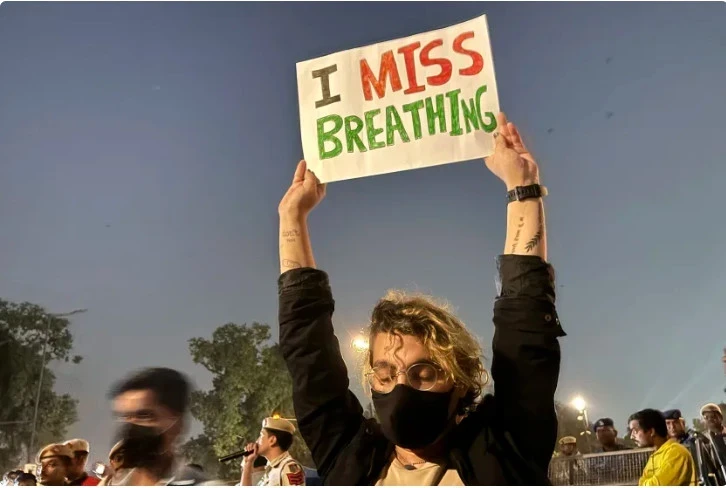 Протестующие собрались у Ворот Индии, призывая правительство действовать против загрязнения воздуха