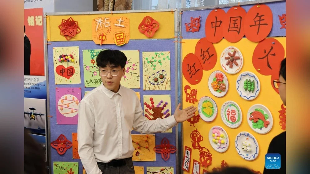 Кроме того, на выставке были представлены творения монгольской молодежи, каждая работа отражала стремление к благополучию и дружбе между Монголией и Китаем.